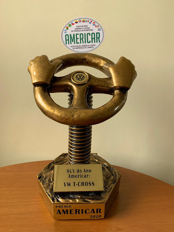Volkswagen reafirma una vez más su presencia en la región, al recibir por su modelo T-Cross, el Premio Americar 2020. Se trata de uno de los reconocimientos más respetados del sector por su cobertura en toda América Latina. Asimismo, durante la evaluación participaron como jurado más de 70 periodistas de países como Argentina, Bolivia, Brasil, Chile, Colombia, Costa Rica, Ecuador, México, Panamá, Paraguay, Perú y Uruguay.